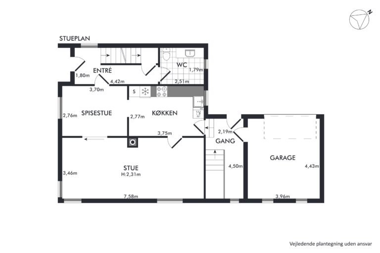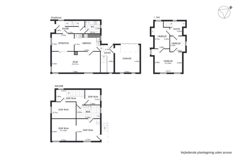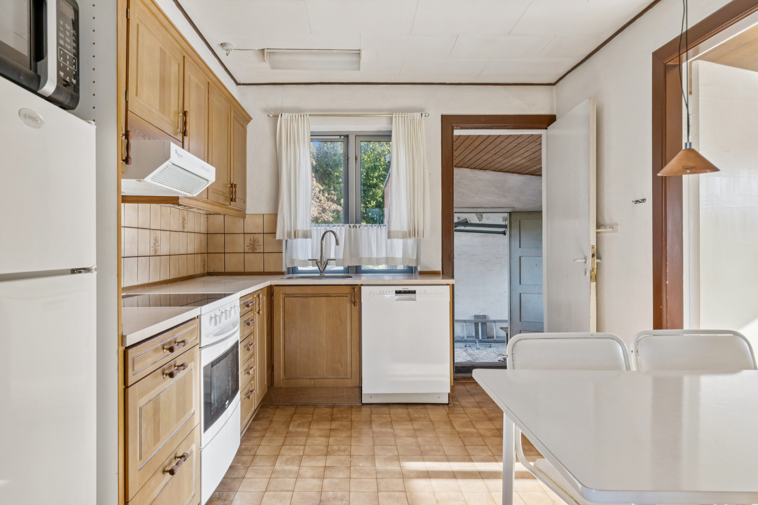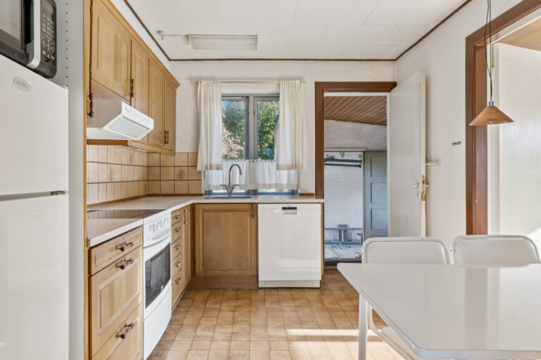 Du finder en kælder på 68 bonuskvadratmeter med et badeværelse og flere disponible rum; måske der her skal indrettes værksted, viktualierum, hobbyrum eller vaskerum? Ovenpå folder stueetagen sig ud med hjemmets opholdsrum, som tæller køkkenet med en tilstødende spisestue samt en rummelig dagligstue med et dejligt lysindfald. Etagen afrundes med et gæstetoilet, mens en mellemgang også giver adgang til garagen. Til slut kommer førstesalen med to værelser og et gennemgangsværelse, hvor den oprindelige charme viser sig i plankegulvene.