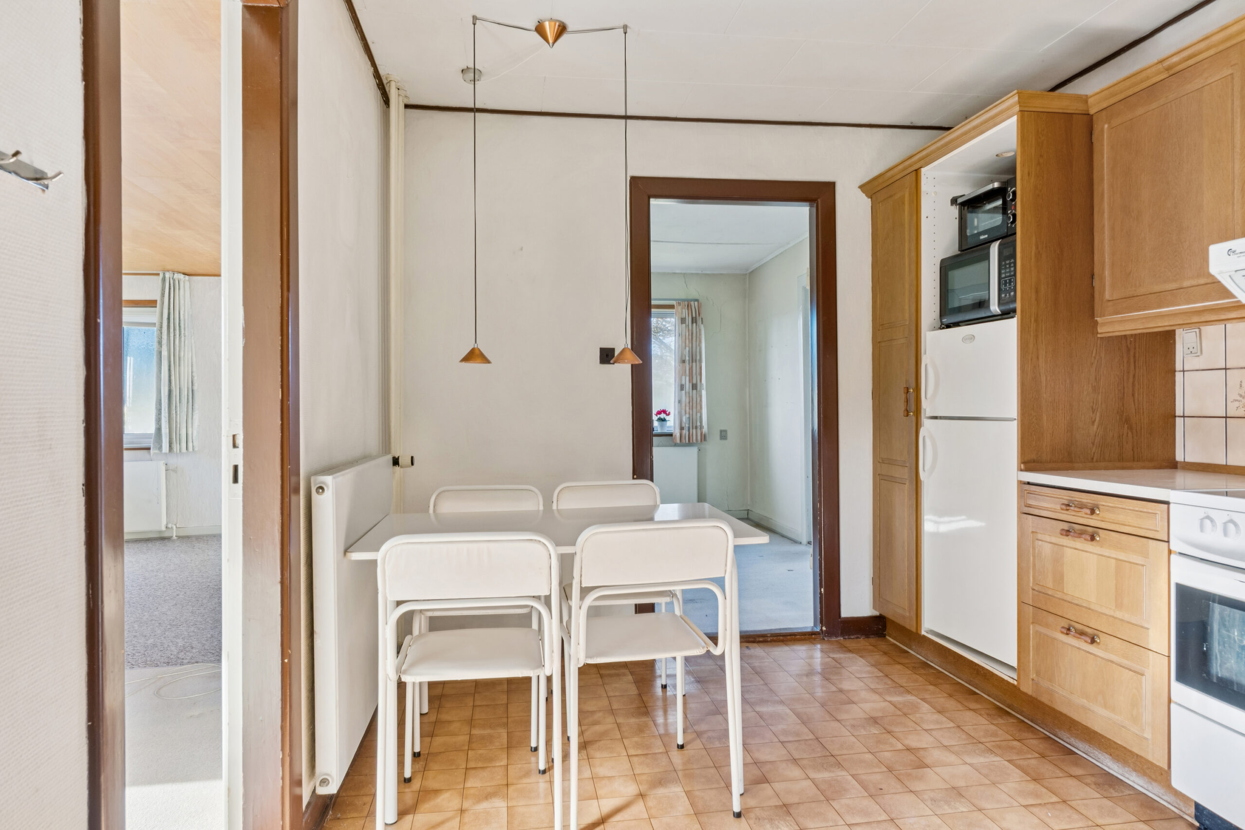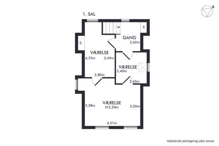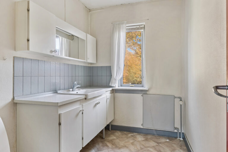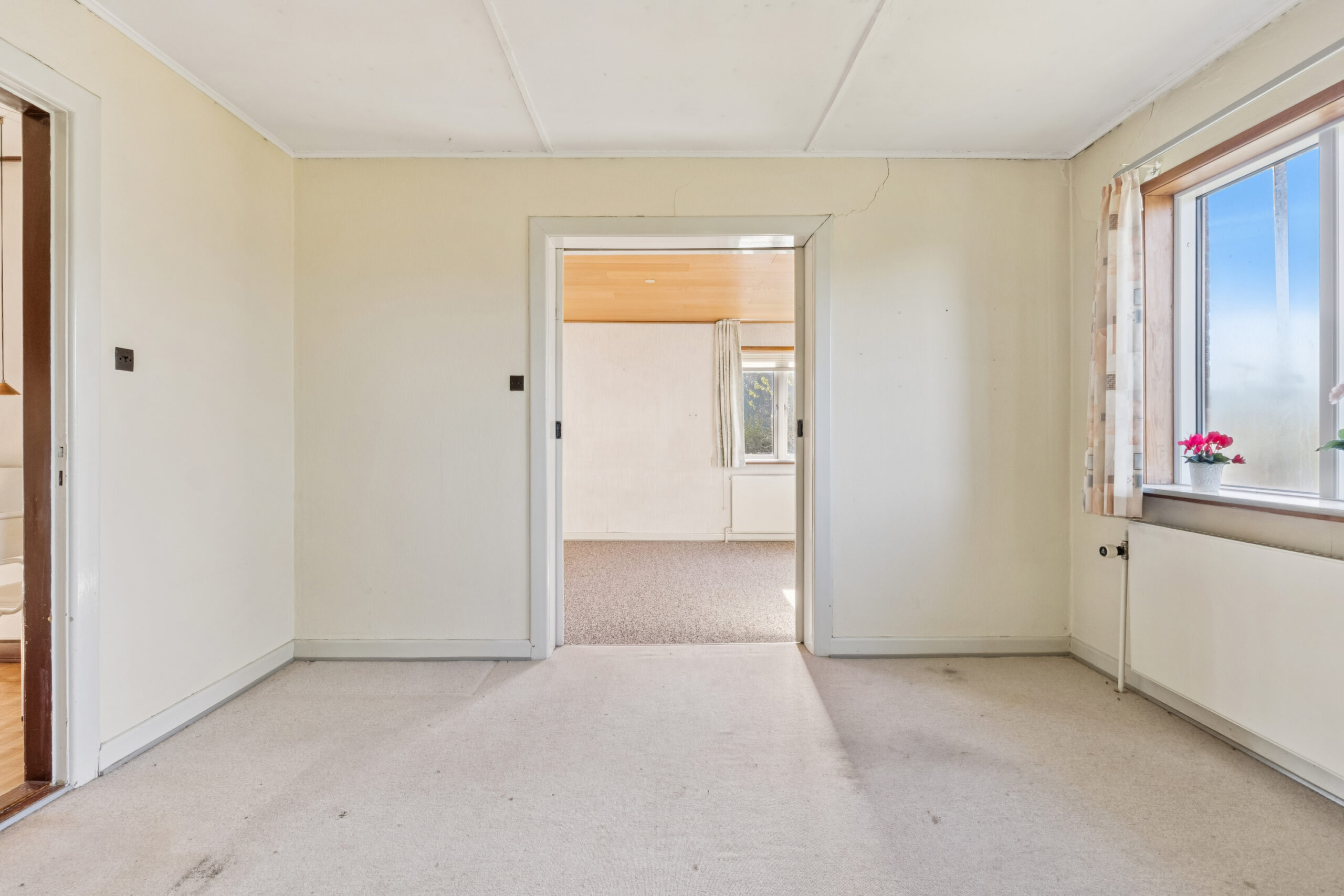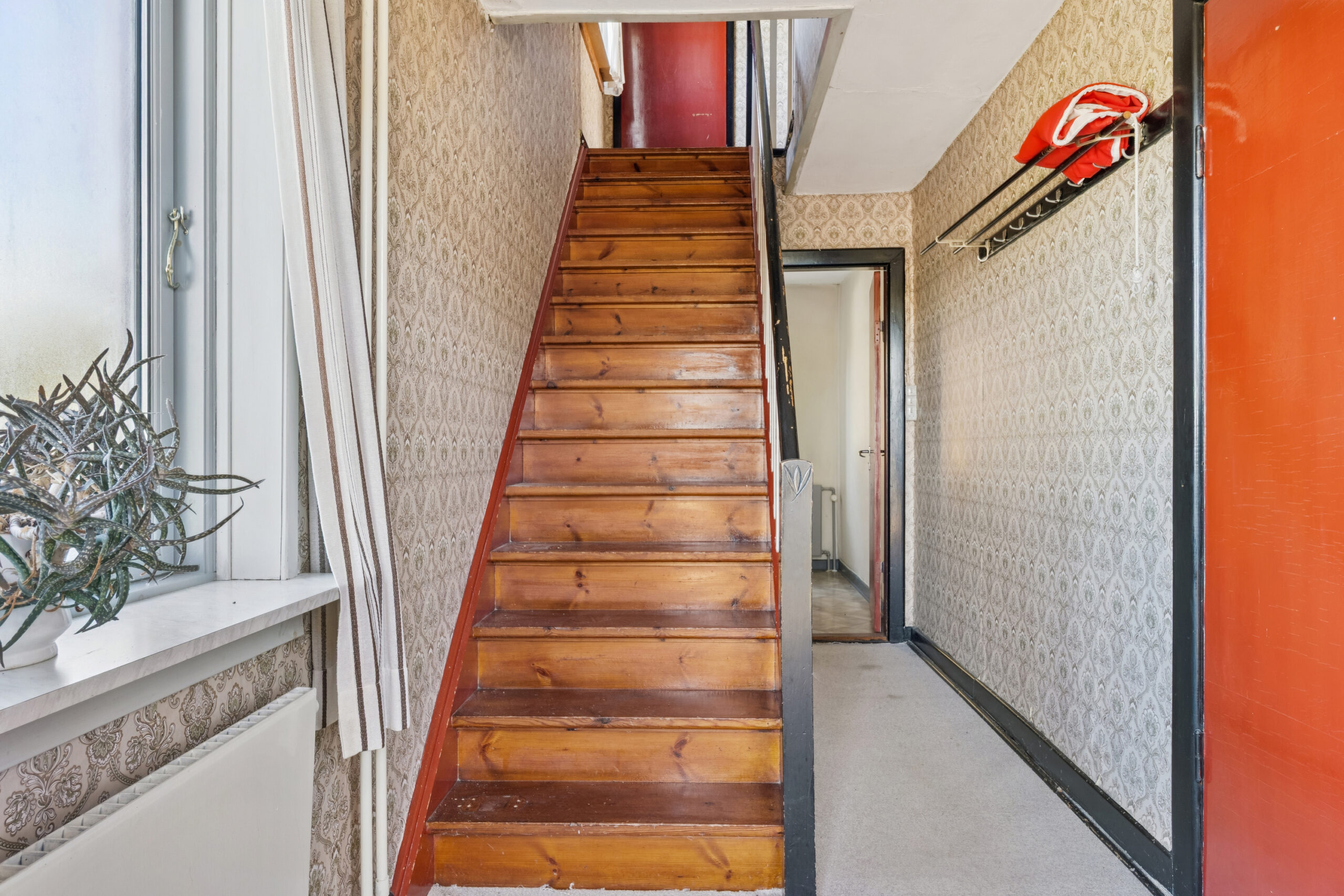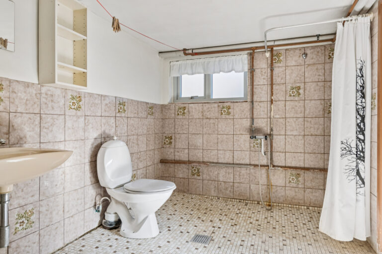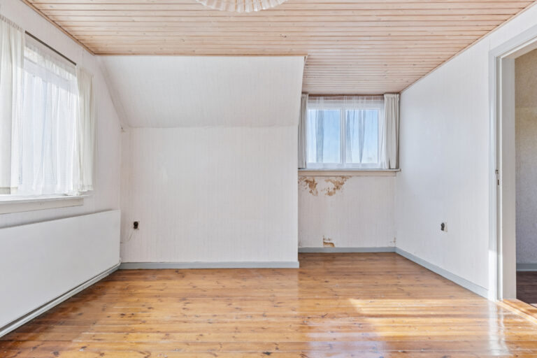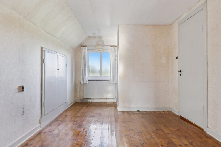Huset præsenterer sig på klassisk manér med en rødstensfacade, sprossede vinduer og kvist på taget. Bag det klassiske ydre venter tre etager: kælder, stueplan og førstesal. Hjemmet trænger til kærlighed, knofedt og moderne opdateringer, hvilket giver dig mulighed for at indrette rummene præcis, som du ønsker det.