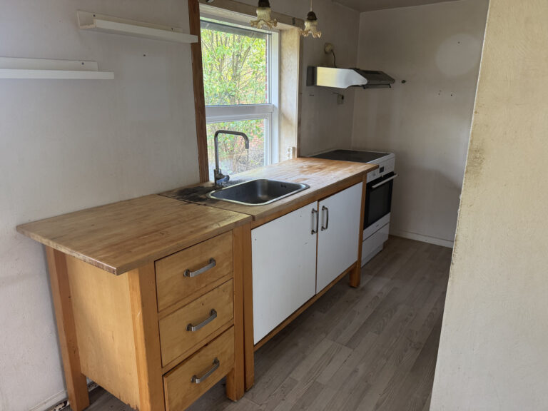 Huset præsenterer sig på klassisk manér med en rødstensfacade, og kvist på taget. Bag det klassiske ydre venter to etager: stueplan og førstesal. Hjemmet trænger til kærlighed, knofedt og moderne opdateringer, hvilket giver dig mulighed for at indrette rummene præcis, som du ønsker det.