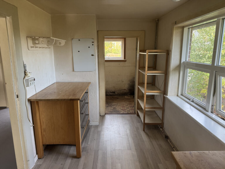 Huset er opført i 1944, og til/ombygget i 1975 og nu står det klar til en ny ejer, der kan puste nyt liv i gamle klæder.