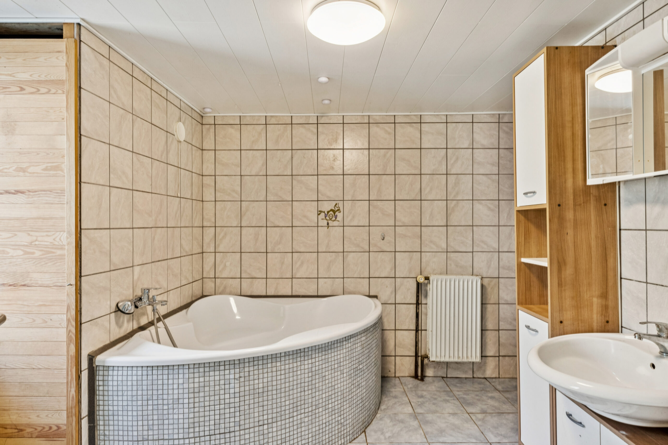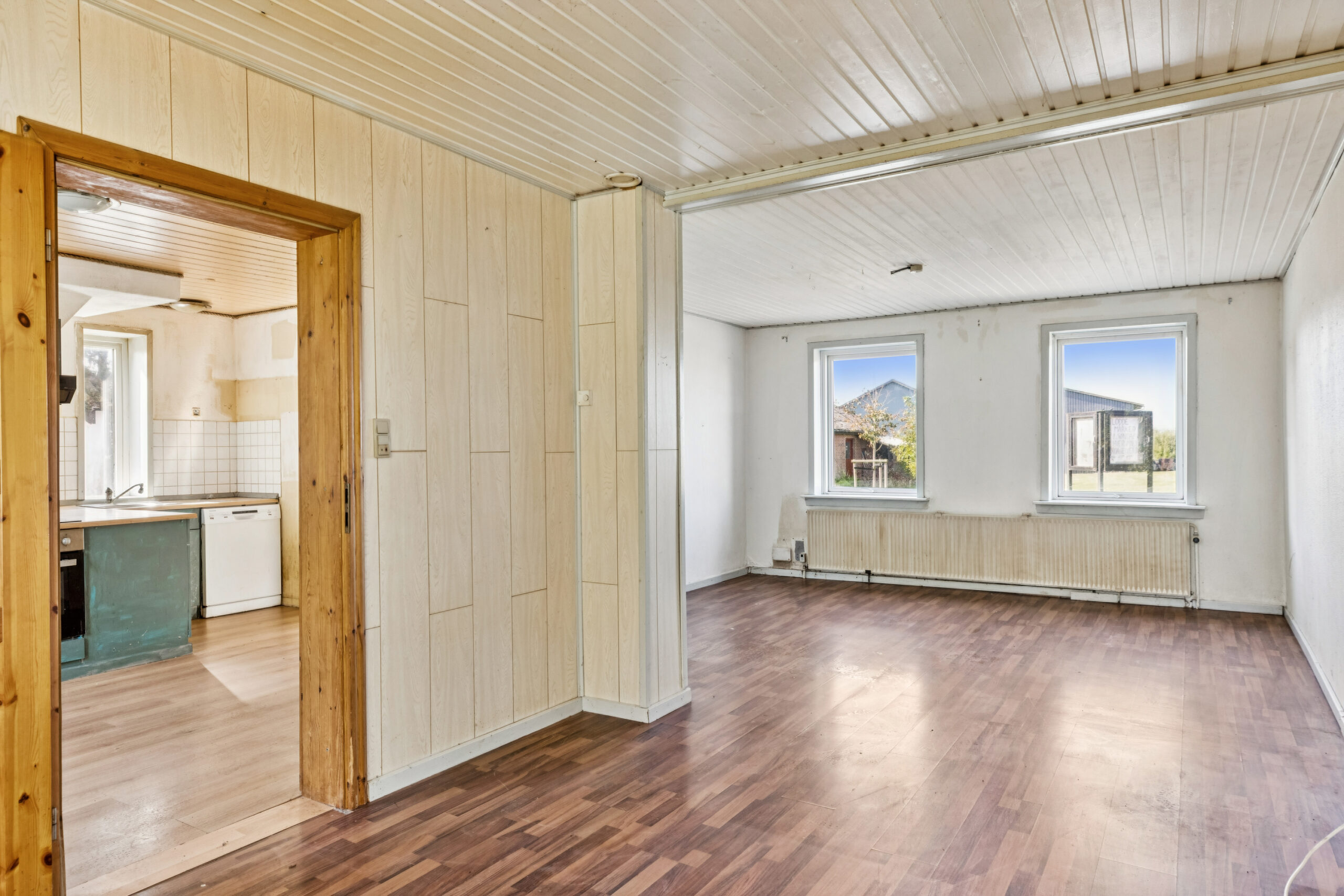 Som huset står lige nu råder det over en rummelig entré, et spisekøkken og en stor stue, et værelse, et toilet og et badeværelse. Langt hen ad vejen synes gulvene pæne, og udgangspunktet er altså godt, særligt fordi lysindfaldet er pænt og badeværelset indrettet med et stort badekar, ligesom huset udenfor kan prale af nyt tag på bagsiden.