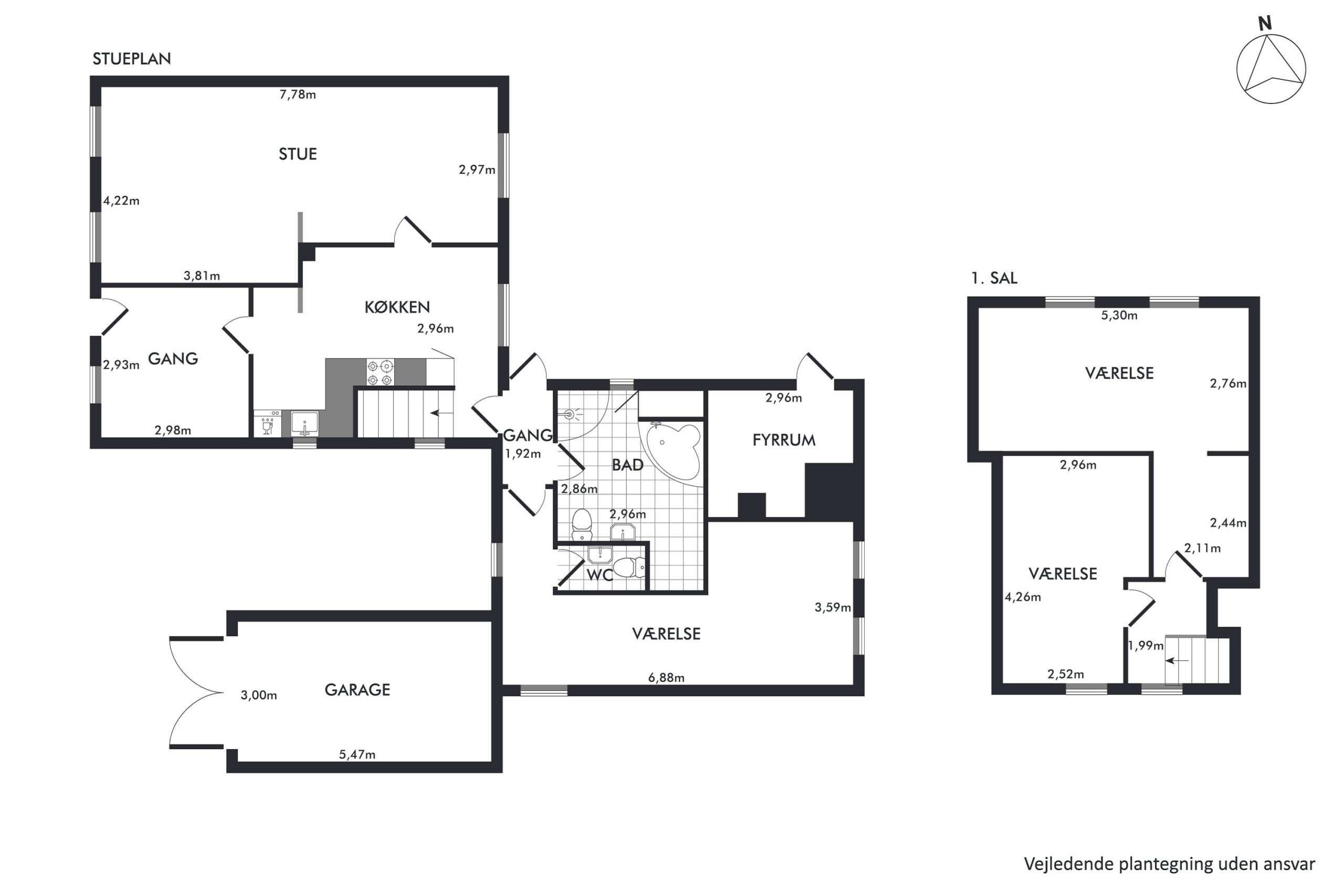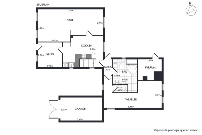 Det er dog helt op til dig, hvordan hjemmet skal se ud fremadrettet: Måske drømmer du om moderne komfort og minimalisme, hvor et grebsfrit køkken flyder sammen med stuemiljøet? Måske vil du hellere indrette med fyldningsdøre og plankegulve for det mere klassiske udtryk? Og måske skal vådrummene helt omarrangeres og toilettet flyttes ud i entréen, så der kan blive plads til to soveværelser? Mulighederne er mange, og det er kun din fantasi, der sætter grænser!